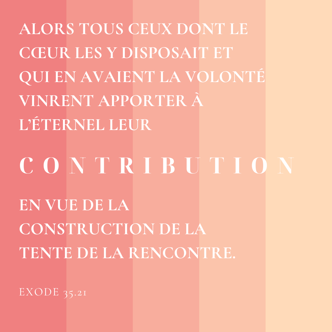 🪶 Après le péché d’idolâtrie du peuple et le pardon accordé à ceux qui se sont repentis, Dieu reprend exactement là où Il s’était arrêté : la construction du tabernacle et l’établissement de son alliance. Il désire toujours établir son peuple. Mais cette fois-ci, le peuple a changé. Il a su attendre 40 jours que Moïse redescende de la montagne, et maintenant, tout le peuple est prêt à offrir ce qu’il a de meilleur au service du Seigneur.