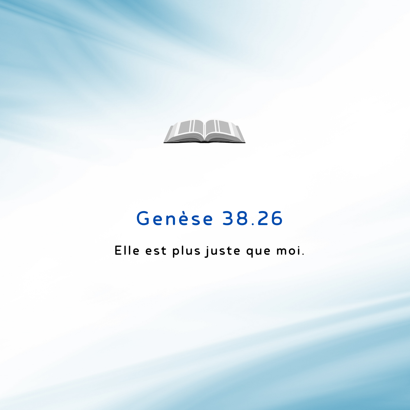 🪶 Tamar a risqué sa vie en se prostituant, mais l’injustice qui lui a été faite dans son honneur de femme a fini par se transformer en justice. Elle a pu avoir un enfant pour perpétuer la lignée familiale; et quelle lignée, elle sera l’ancêtre de Jésus et sera nommée dans les généalogies de Matthieu. Juda reconnaît sa propre hypocrisie en déclarant juste Tamar, car lui-même était celui qui s’était uni à cette « prostituée » qui était sa belle-fille.