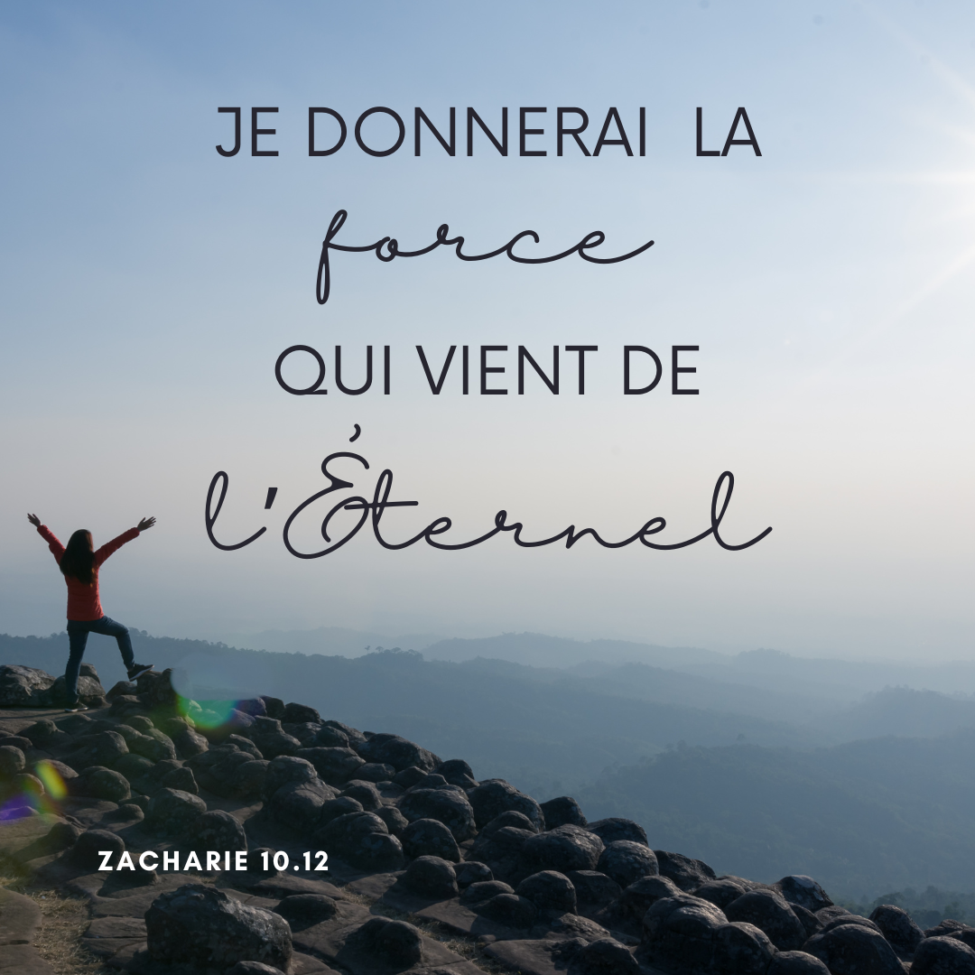 📜 Zac 10.12 – Et aux Israélites, je donnerai la force qui vient de l’Éternel. Ils marcheront pour lui, l’Éternel le déclare.