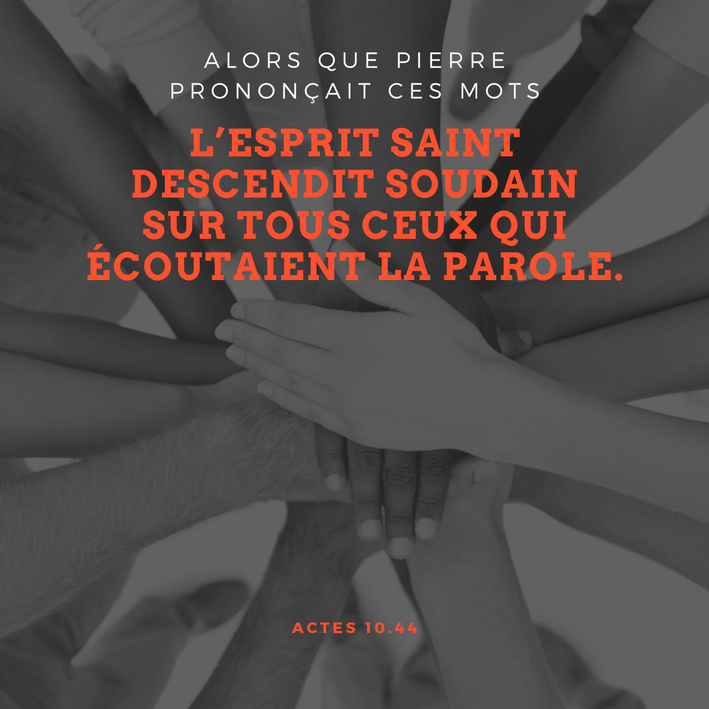 🪶 L’Esprit est donné de la même manière à tous ceux qui croient. Il n’y a aucune barrière entre les personnes et les peuples. Voici le plan de Dieu et les fondements de l’Église. Tout le monde est bienvenu, sans distinction de personnes. Tout le monde a besoin du sang de Christ pour être réconcilié avec Dieu et recevoir la même grâce.