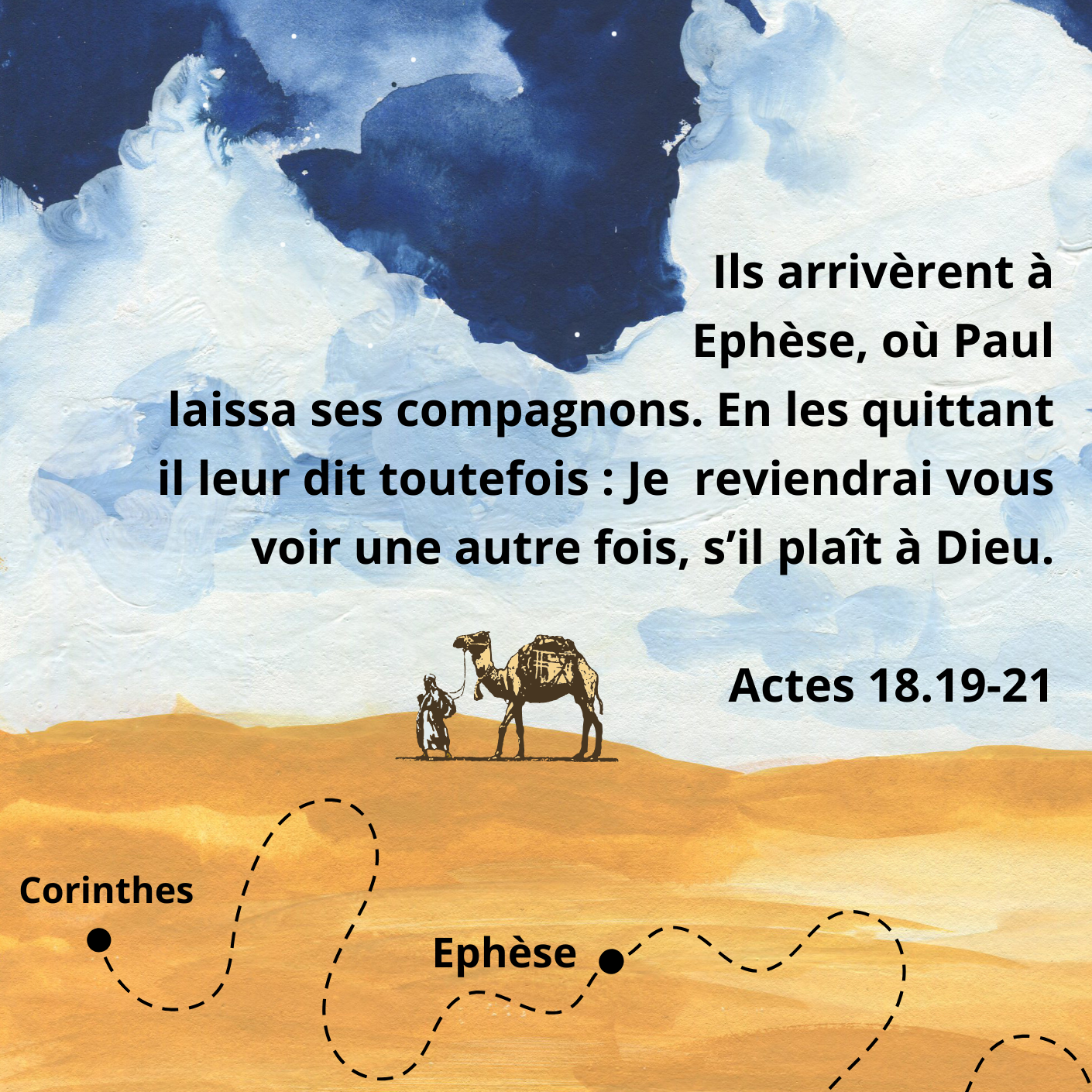🪶 Malgré l’opposition rencontrée à Corinthe, Paul a pu prêcher l’Évangile pendant deux ans, librement et protégé par le Seigneur, comme Il le lui avait promis. Arrivé à Éphèse, il visite les synagogues comme à son habitude, mais malgré le besoin de partager l’Évangile qu’il perçoit à Éphèse, il décide de ne pas rester car il a d’autres projets personnels. Il décide de partir et prie Dieu de lui permettre de revenir.