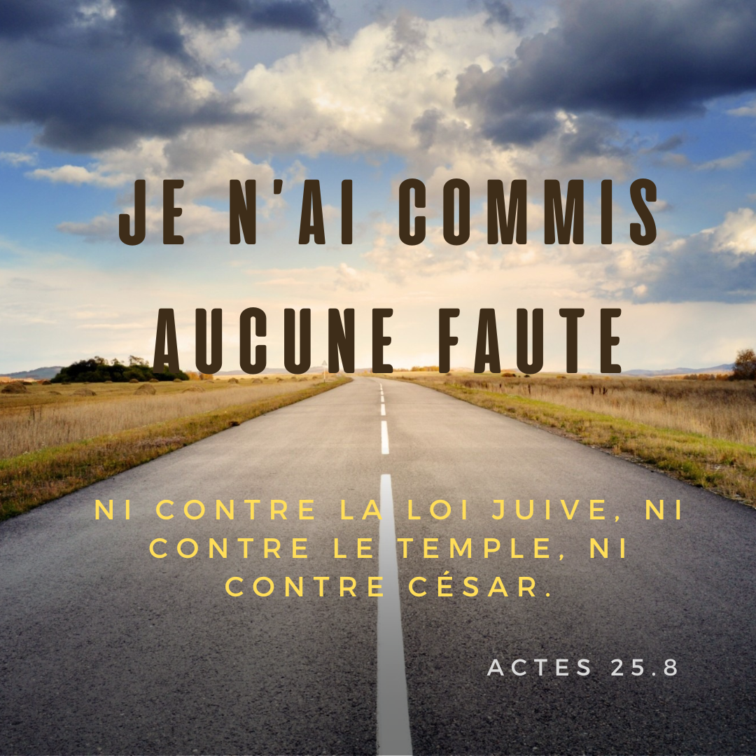 🪶 Paul suit l’exemple qu’il prêche dans ses écrits (Romains 13:2). Il se soumet aux autorités, respecte la loi et fait confiance à Dieu pour diriger la justice selon son plan. Festus n’a rien trouvé pour accuser Paul, si ce n’est son message qui annonce Jésus-Christ ressuscité. Il balaie cette notion comme un détail sans importance, et pourtant, c’est cette question qui enflamme encore aujourd’hui les cœurs. La réalité de la résurrection de Jésus lui donne toute autorité sur cette terre contre la mort et le péché, et fait de lui, sans aucun doute, le Fils de Dieu et le Roi des rois.