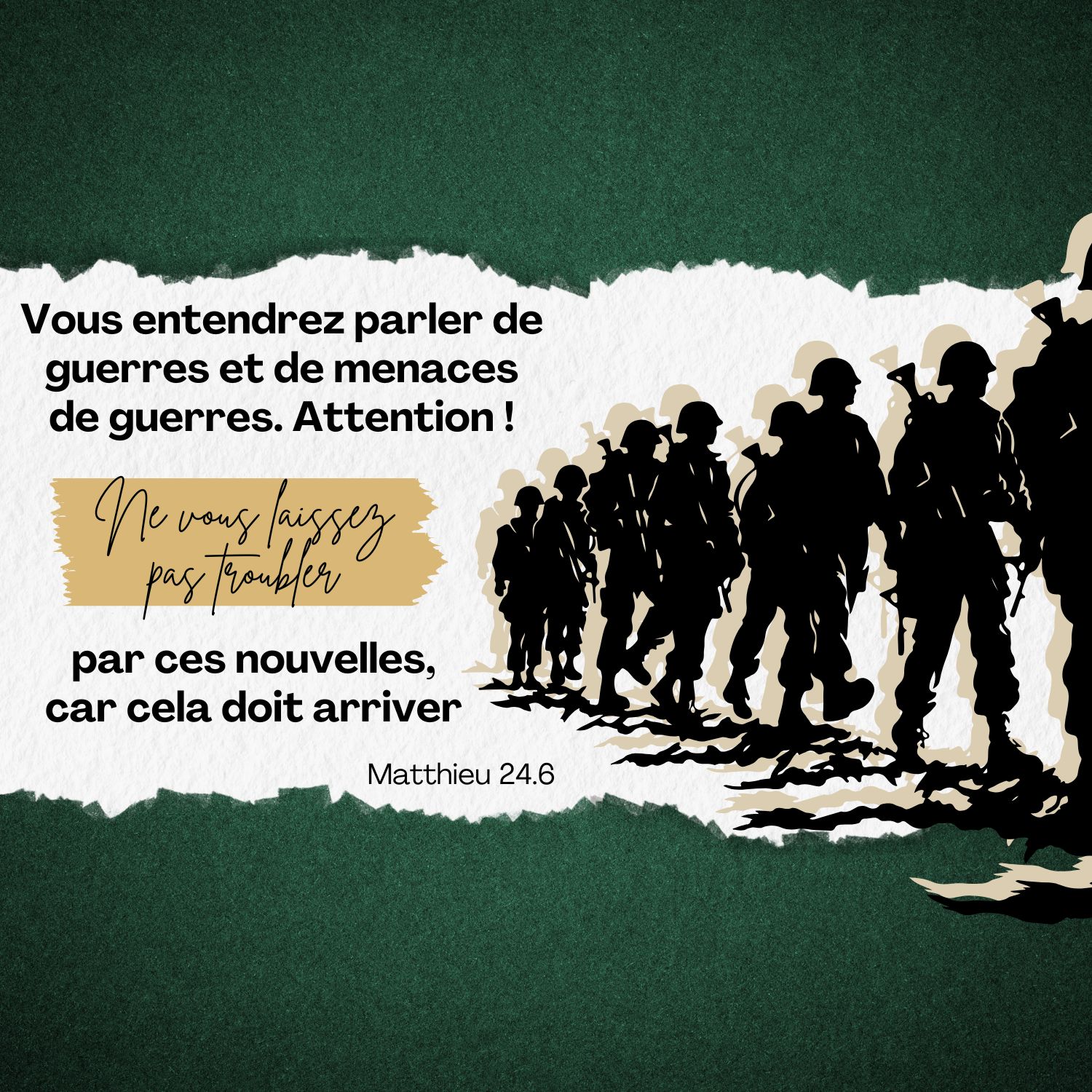 Depuis la création, Dieu appelle les hommes à avoir un cœur qui le cherche et qui se soumet. Malgré les circonstances, il promet encore aujourd’hui sa paix à ceux qui le suivent. Êtes-vous prêt à rester fidèle ? Prêt à persévérer jusqu’à la fin, sans vous laisser séduire par les plaisirs éphémères et les mensonges du monde ? Dieu n’a pas promis une vie facile, mais il a promis que la fin viendra, et que nous serons accueillis avec joie dans sa présence, pour vivre avec lui, glorieux et victorieux.
