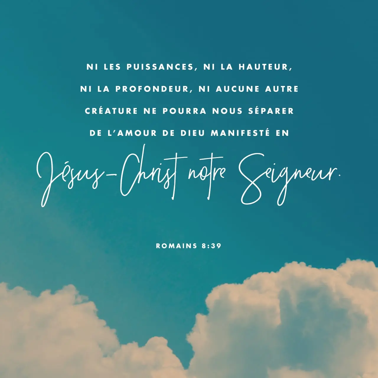 🙏 Prière : Abba, Père, je n’arrive pas à saisir pleinement la réalité d’être un enfant de Dieu. Je suis encore en proie à la faiblesse, au doute et aux tourments, mais je fais pleinement confiance en la promesse de ta parole. L’ennemi n’a plus aucun pouvoir sur moi grâce à la victoire de ton Fils Jésus. Je marche maintenant vers l’avant, en regardant à toi, et je n’accepte plus les mensonges de l’ennemi. Merci car je suis uni à toi dans la victoire, et rien ne peut me séparer de ton amour, pas même mes faiblesses et mes erreurs, que tu transformes en vie par la puissance de ton Esprit.