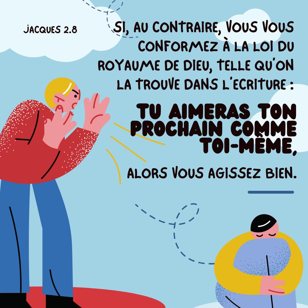 🔆 Bonjour à tous, chers amis ! Aujourd’hui, nous lisons Jacques 2 – www.bible.com/bible/21/JAS.2
