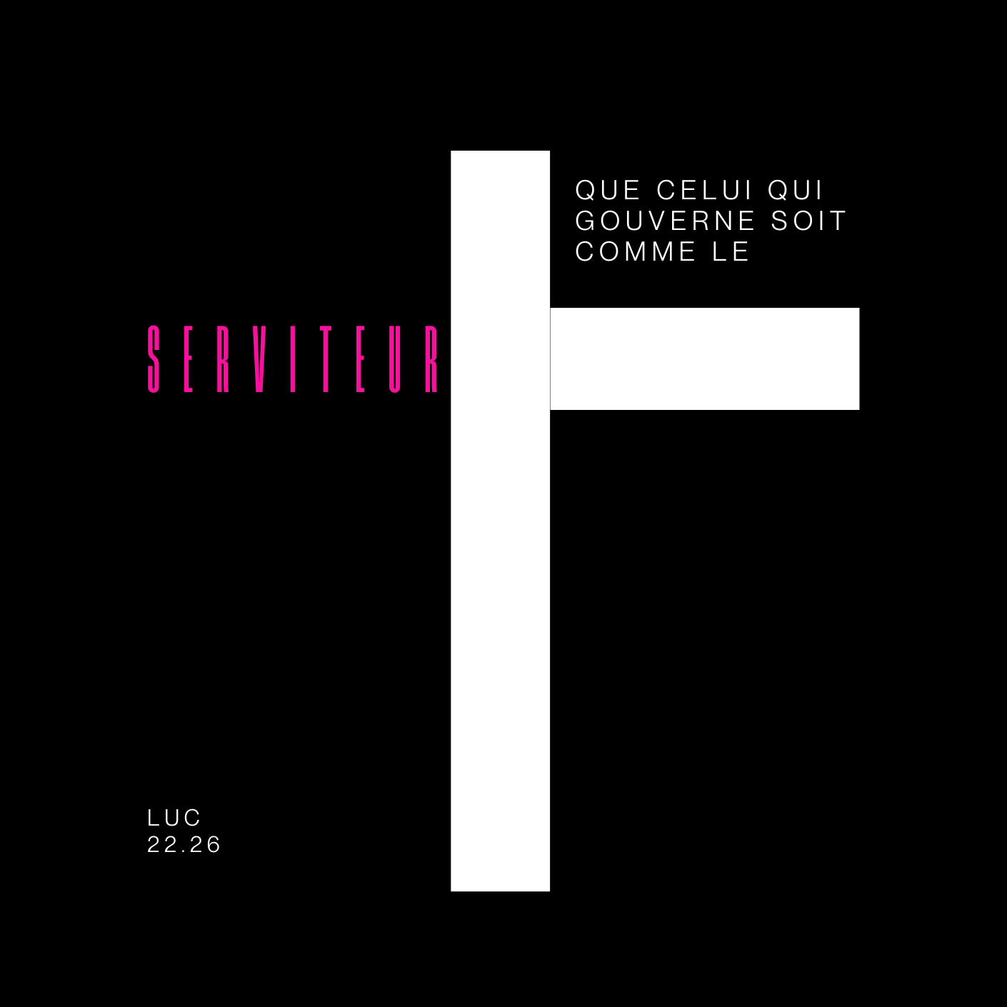 Que le plus grand parmi vous soit comme le plus jeune, et que celui qui dirige soit comme celui qui sert. Car qui est le plus grand, celui qui est à table, ou celui qui sert ? N’est-ce pas celui qui est à table ? Mais moi, je suis au milieu de vous comme celui qui sert.