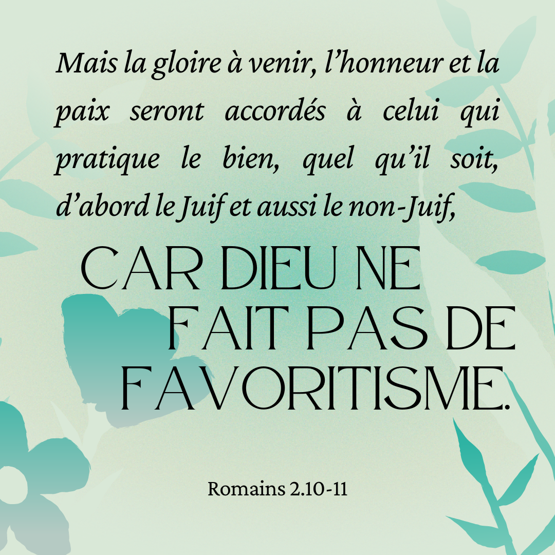 🪶 Le cœur de l’homme recherche Dieu car il a été créé pour être en communion avec son Créateur de qui il tire la vie et la paix. Le jour du jugement, Dieu ne va pas regarder nos actions, mais il va regarder l’attitude de nos cœurs. Il y a un fossé infranchissable entre la sainteté de Dieu tout-puissant et le cœur pécheur de l’homme. Dans les prochains chapitres, Paul exposera comment nous pouvons être réconciliés avec Dieu et être trouvés justes devant lui.
